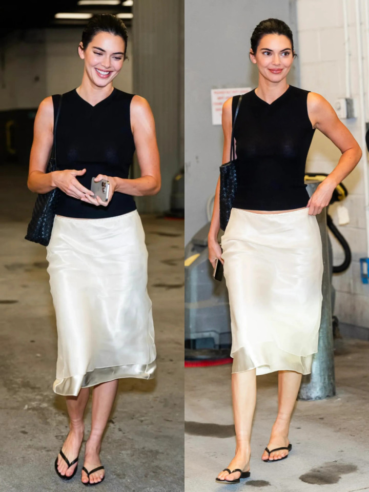 露腰规画偷偷拉长体态,开叉裙摆让腿部线条在行走间乍明乍灭,配上一对低跟凉鞋,优雅轻视,勤俭却越看越有质感。