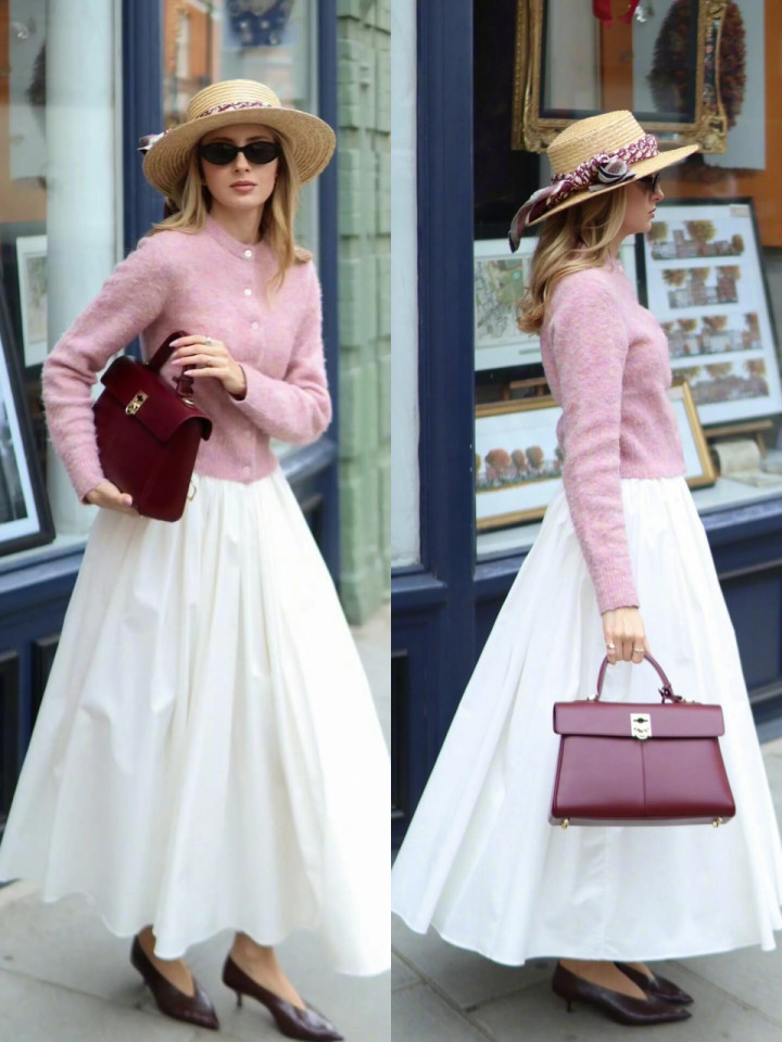 如果偏疼仁和穿衣立场,不妨不错弃取浅粉色的至意开衫,搭配上白色的伞裙,脚上穿的棕红色的低跟单鞋,仙女气味自显,显得更年青仁和优雅。