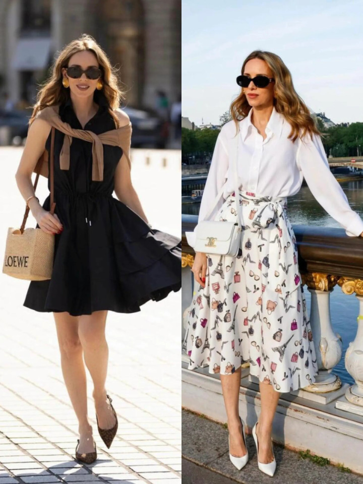或是弃取一件宽肩大 U 领白色连衣裙,干净涌现,仁和又显气质。脚踩一对玄色单鞋,再戴上墨镜,显得又酷又好意思。