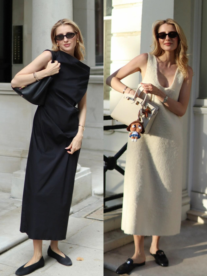 除了半身裙,连衣裙亦然春日绝佳的弃取之一,一件连衣裙就能处罚全身。举例上头用玄色无袖连衣裙,穿在身上自带邃密光芒感,让体态变得愈加畅通利落。