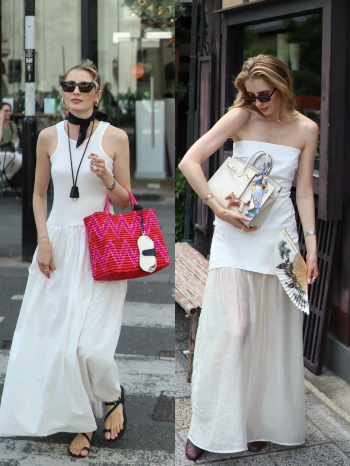 在这个春日里,偏疼清露肌肤的穿搭最是仁和动东谈主,一件勤俭白背心搭配一袭金银白伞裙,或是选一件一字肩抹胸上衣,搭配白色薄纱伞裙,恰到平正地显现纤细手臂,优好意思天鹅颈以及弥远锁骨,干净又素雅,像是春风里不外分柔柔,将仙女的灵动与女东谈主的优雅偷偷藏在每一寸光影里。