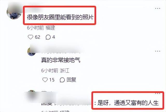 网友们也纷纷欷歔,“这才是真实的朱门生计,精神阔气比浑身大牌更高等”,还有东谈主说,“郭晶晶的底气从来不是霍家给的,是她我方跳出来的”。